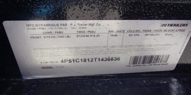 GVWR 7000# UNLADEN 1930# PAYLOAD 5070#