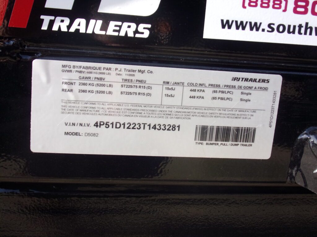 (#9151) 2026 PJ UTILITY DUMP 60″ X 8′ MODEL D5082 SUGGESTED RETAIL PRICE $8,612 REDUCED CREDIT CARD PRICE $7,997 FURTHER REDUCED CASH PRICE $7,690