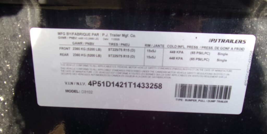 GVWR 9900# UNLADEN 2990# PAYLOAD 6910#