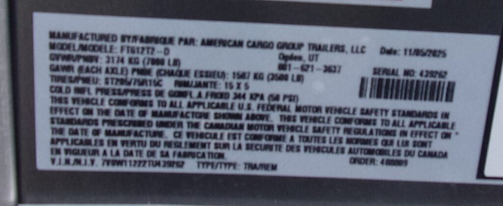 GVWR 7000# UNLADEN 1740# LOAD CAPACITY 5260#
