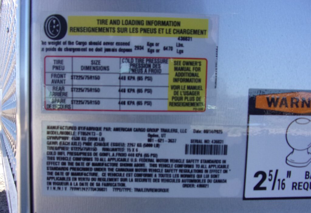 GVWR 9990# UNLADEN 3520# LOAD CAPACITY 6470#