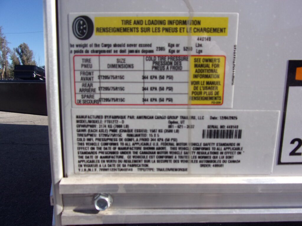 GVWR 7000# UNLADEN 1740# LOAD CAPACITY 5260#