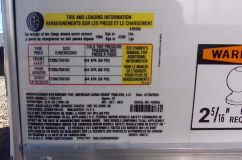 GVWR 7000# UNLADEN 2800# LOAD CAPACITY 4200#