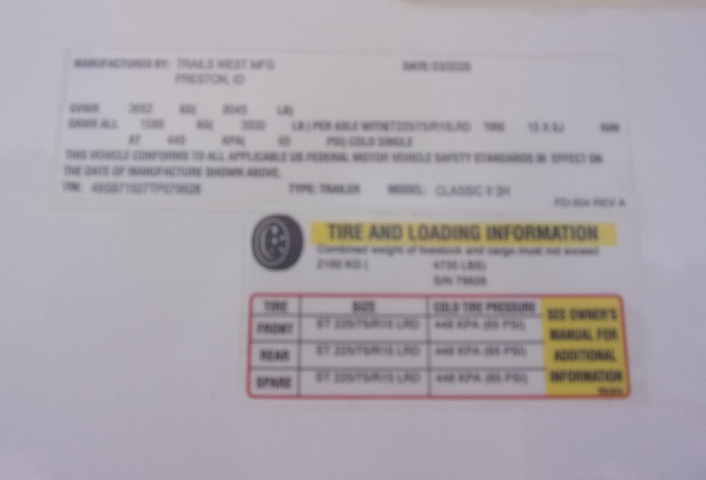 GVWR 8045# UNLADEN 3310# PAYLOAD 4735#