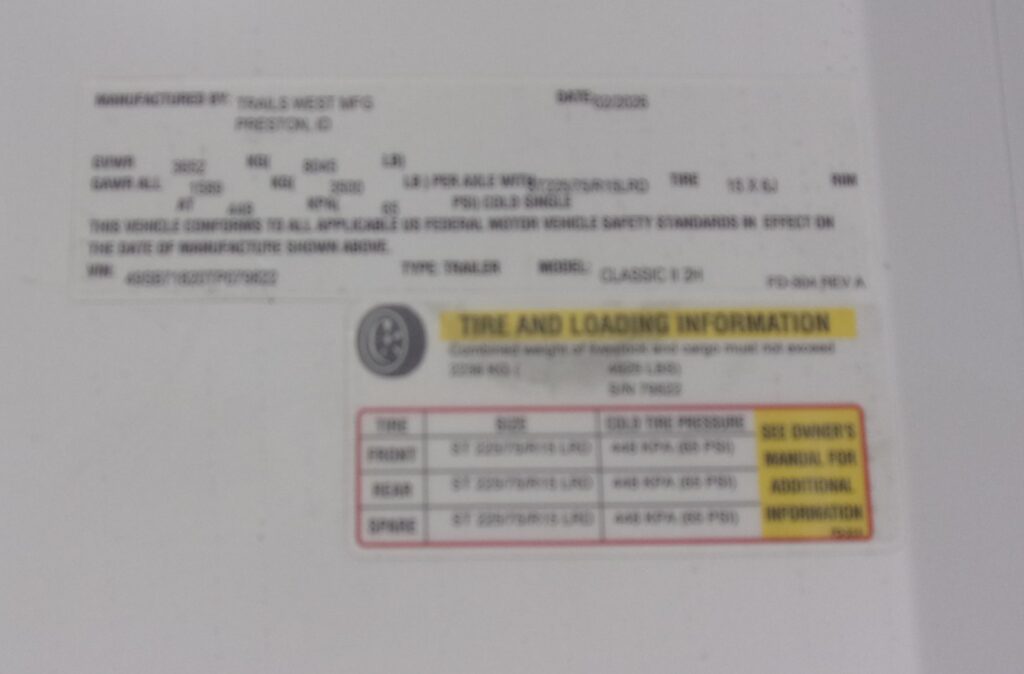 GVWR 8045# UNLADEN 3120# PAYLOAD 4925#