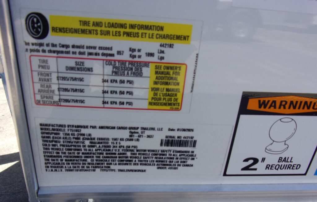 GVWR 2990# UNLADEN 1100# LOAD CAPACITY 1890#