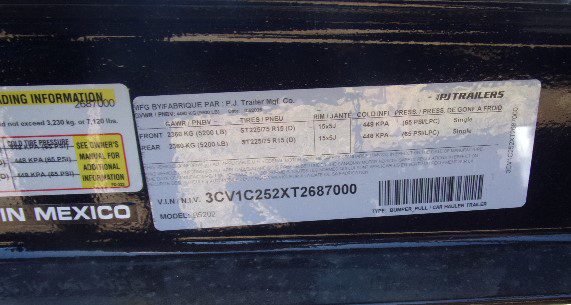 GVWR 9900# UNLADEN 2780# LOAD CAPACITY 7120#