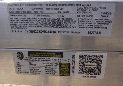 GVWR 8500# UNLADEN 1295# LOAD CAPACITY 7205#