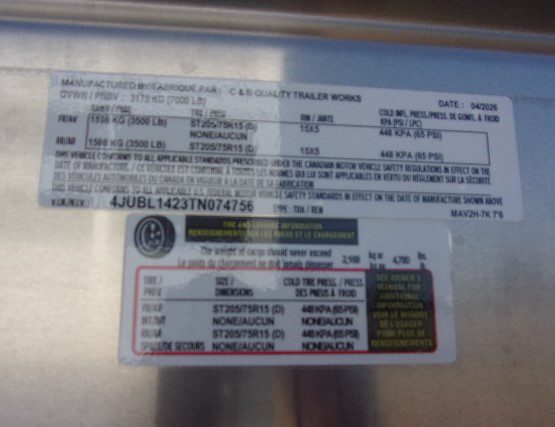 GVWR: 7000# SHIPPING WEIGHT: 2220# PAYLOAD: 4780#
